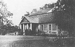 Nie zachował się stojący obok tzw. „biały domek”, który miał charakter typowego klasycystycznego dworku. Był on zbudowany prawdopodobnie pod koniec XVIII wieku. Był dziesięcioosiowy, parterowy. Przed umieszczonym niesymetrycznie głównym wejściem był portyk, którego 4 kolumny podtrzymywały półbeczkowaty dach. Dom był przykryty czterospadowym dachem gontowym. Był to dom rządcy majątku[1].