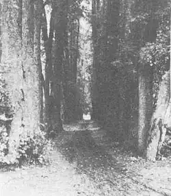 Wśród nielicznych zachowanych do dziś elementów ostały się również resztki bramy wjazdowej do dworu. Stała ona kiedyś u wylotu długiej alei kasztanowej. Część tutejszego parku mieściła się przed domem. Był tu wielki kolisty gazon. Obok bramy były szklarnie z inspektami. Większa część parku i ogrodu była za domem. Główną jej ozdobą była prawie kilometrowa aleja lipowa z ogromnymi drzewami, o wysokości do 50 m, tworzącymi tunel nad traktem. Wiek niektórych lip oceniano na początku XX wieku na 340 lat. Po jednej stronie alei był sad owocowy, po drugiej park spacerowy, przechodzący stopniowo w las.