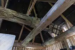 Dach wiatraka jest dwuspadowy ze ściętym naczółkiem od strony śmigła. Dodatkowo zawieszony jest nad wejściem w pierwszej i nad drzwiami przyjęciowymi drugiej kondygnacji[3].