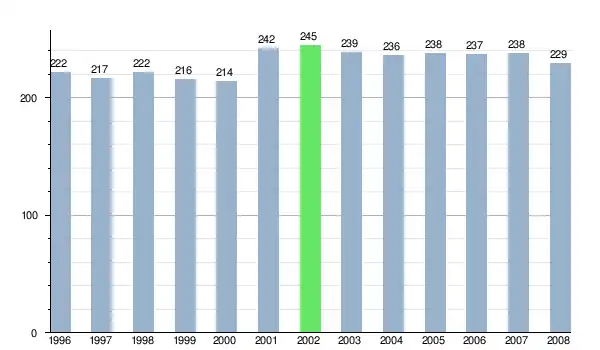 Według danych z dnia 31 grudnia 2012 roku, wieś zamieszkiwało 210 osób, w tym 104 kobiety i 106 mężczyzn[6].