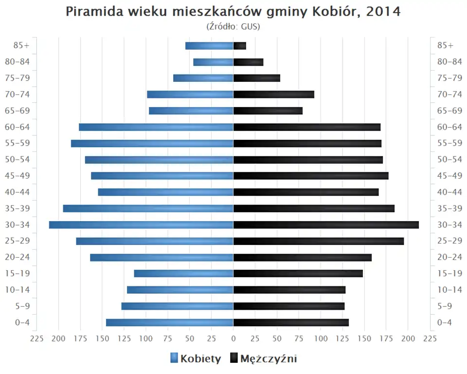 - Piramida wieku mieszkańców gminy Kobiór w 2014 roku[1].