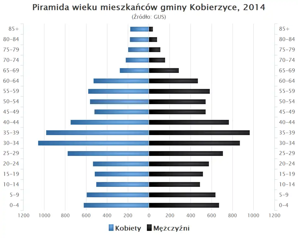 - Piramida wieku mieszkańców gminy Kobierzyce w 2014 roku[4].