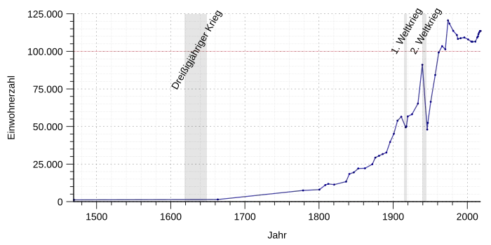 Wykres zmian populacji Koblencji od 1469 do 2015 roku:
