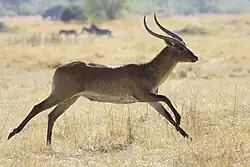 Kobus vardonii | (Livingstone, 1857) | kob lirorogi | gatunek monotypowy | nierównomiernie w Angoli, wschodniej Namibii, północno-wschodniej Botswanie, Zimbabwe, południowo-wschodniej Demokratycznej Republice Konga, północnym i zachodnim Malawi oraz południowo-zachodniej Tanzanii | DC: 126–156 cm DO: 28–32 cm MC: 48–91 kg |