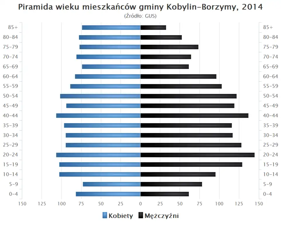 - Piramida wieku mieszkańców gminy Kobylin-Borzymy w 2014 roku[1].