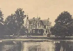 - dwór z 1886 wzniesiony przez Zygmunta Gorgolewskiego dla Tadeusza Twardowskiego, drugiego ordynata (syna Teodora) w 1886. Pałacowi nadano charakter neorenesansowy, nawiązujący do północnoeuropejskiej wersji tego stylu (Queen Anne Revival). Pałac dwukondygnacyjny, o skomplikowanej bryle. Elewacje z surowej cegły z obramieniami z tynku i piaskowca. Stromy dach z licznymi akcentami pionowymi - sterczynami, wieżami, kominami, zwieńczeniami fasad i ryzalitów przydaje budowli okazały charakter. W przyziemiu okrągłej wieży od strony podjazdu, wmurowana jest tablica z herbem Twardowskich i datą budowy. We wnętrzach zachowały się oryginalne sztukaterie i kominki. Przed pałacem duży dziedziniec z podjazdem. Odrestaurowany i adaptowany w 1990 na hotel.