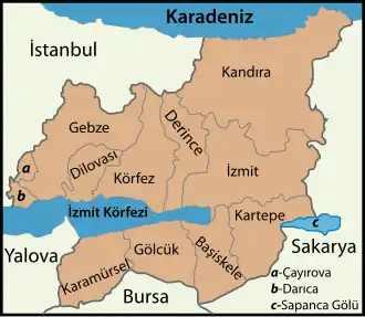 Prowincja Kocaeli dzieli się na dwanaście dystryktów: