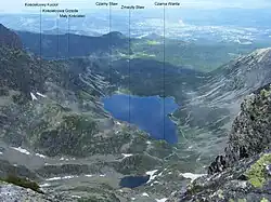 – przy północnym brzegu jeziora odchodzi czarny szlak na Mały Kościelec i dalej na przełęcz Karb oraz Kościelec. Czas przejścia na Karb: 40 min, ↓ 30 min[5].