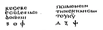 - ↑ The Greek New Testament. K. Aland, A. Black, C.M. Martini, B.M. Metzger, and A. Wikgren, in cooperation with INTF. Wyd. 3rd edition. Stuttgart: United Bible Societies, 1983, s. XVI.
