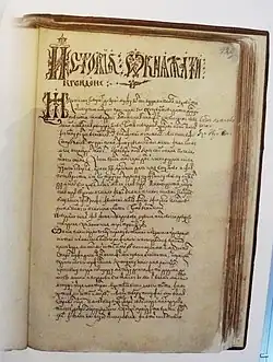 - ↑ AB, Rękopis ze zbiorów Biblioteki Raczyńskich wpisany na Listę Krajową Programu UNESCO Pamięć Świata, w: Winieta - pismo Biblioteki Raczyńskich, Poznań, nr 3(67)/2014, s.3, ISSN 1509-6343