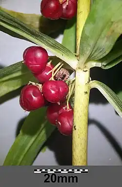 - Jagody z kilkoma nasionami, po dojrzeniu koloru czerwonego.
