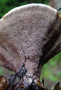 Podobnej barwy jak kapelusz, słabo strefowany, skórzasty, korkowaty, w końcu zdrewniały. Bez zapachu, lub zapach niewyraźny[3].