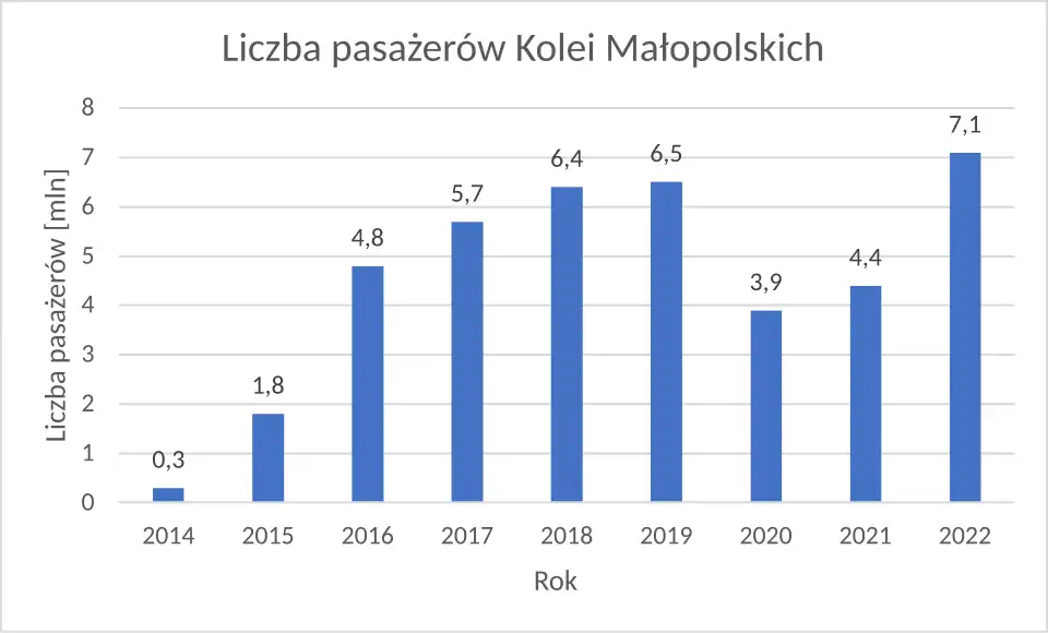 - ↑ 20 milionów pasażerów Kolei Małopolskich [online], inforail.pl [dostęp 2019-03-28] (pol.).
