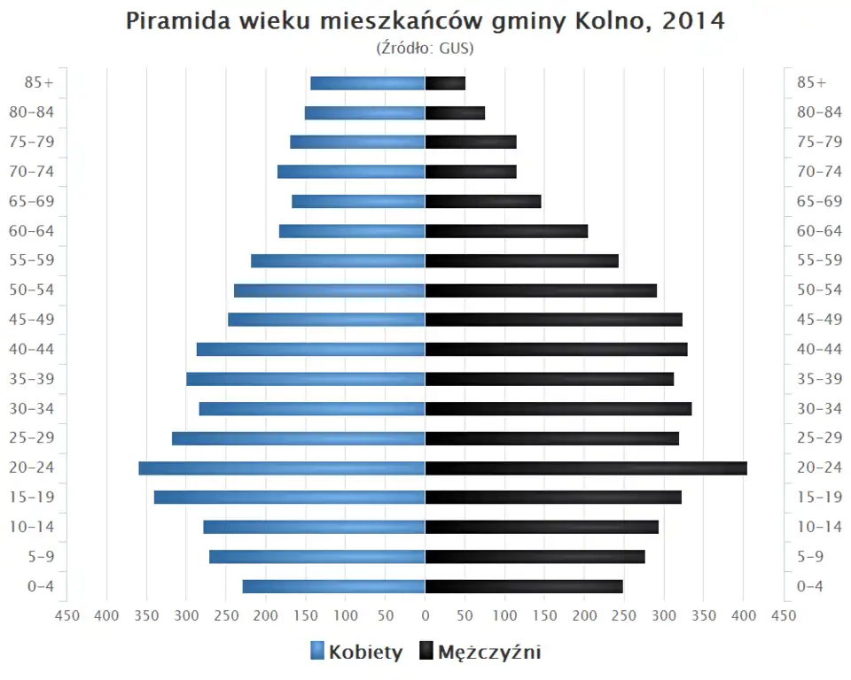 - Piramida wieku mieszkańców gminy Kolno w 2014 roku[1].