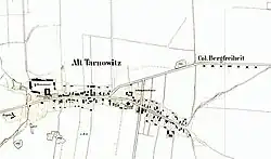 - 1 2 Schlesisches Ortschaftsverzeichnis. Alphabetisches Verzeichnis sämtlicher Städte, Flecken, Dörfer und sonstiger Ortschaften und Wohnplätze der Provinz Schlesien, wyd. 8, Breslau: Verlag von Wilh. Gottl. Korn, 1919, s. 13.