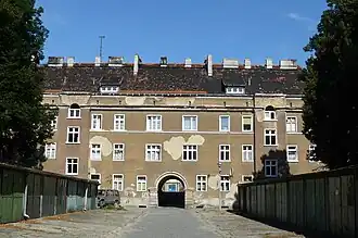 Cały kwartał zabudowano właściwie jednym budynkiem – potężnym prostokątem z wielkim dziedzińcem w środku. Blok jest trzykondygnacyjny, zróżnicowany architektonicznie za pomocą licznych uskoków, mansard i loggii, rozbijających optycznie ciężką bryłę. Na osi wschód-zachód przebito dwie bramy przejazdowe.