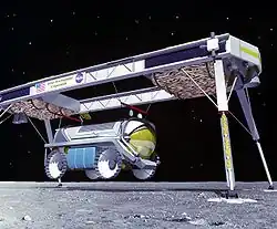 - ↑ Johnson i inni, Evolution of Concepts for Lunar Bases, „Lunar Bases and Space Activities of the 21st Century”, Houston, TX, Lunar and Planetary Institute, 1985, s. 47, Bibcode: 1985lbsa.conf...47J [dostęp 2018-08-22] (ang.).