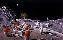 Eksploracja powierzchni księżycowej rozpoczęła się od programu Związku Radzieckiego Luna, w 1959 r.[7] W 1968 roku statek kosmiczny Apollo 8 okrążył Księżyc z trzema astronautami na pokładzie. W następnym roku Apollo Lunar Module wysłał dwóch astronautów na Księżyc, udowadniając, że ludzie mogą podróżować na Księżyc, wykonywać tam badania naukowe i przywozić próbki materiałów[8]. Oprócz wyników naukowych, program Apollo dostarczył cennych lekcji na temat życia i pracy w środowisku księżycowym