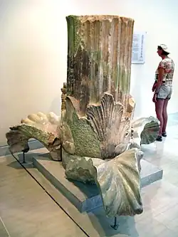 Kolumna akantowa w Delfach[3] (gr. Κίονας με τις χορεύτριες), także Tancerki z Delf – marmurowa kolumna w formie łodygi akantu, zwieńczona trzema posągami tańczących kobiet, które najprawdopodobniej podtrzymywały brązowy trójnóg z omfalosem. Stała w północno-wschodnim narożniku sanktuarium delfickiego. Była darem wotywnym Ateńczyków z IV w. p.n.e. Jej pozostałości znajdują się w Muzeum Archeologicznym w Delfach.