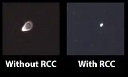 Stopień zniekształcenia jest tym większy im dalej od osi optycznej układu znajduje się źródło światła. Komę koryguje się przez budowanie zespołów soczewek. Obiektyw lub układ optyczny wolny od komy i aberacji sferycznej nazywa się aplanatem[2].