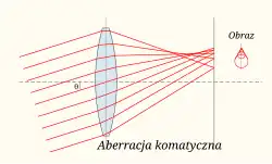 Gdy w prostym układzie optycznym pozbawionym innych aberracji optycznych, pod kątem do osi optycznej, pada wiązka równoległych promieni, to dwa promienie świetlne padające na soczewkę w takiej samej odległości od osi optycznej i po przeciwnych stronach, skupiają się w płaszczyźnie ogniska w tym samym punkcie. Odległość punktu skupienia tych promieni od promienia przechodzącego przez oś optyczną soczewki jest proporcjonalna do kwadratu odległości padania promienia na oś optyczną soczewki i zależy od kąta padania wiązki[2].