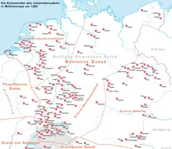 - Przeorat Bohemia: komturie Český Dub, Březina, Kłodzko, Kadaň, Manětín, Pfaden, Ploschkowitz, Praga, Strakonice, Mies
