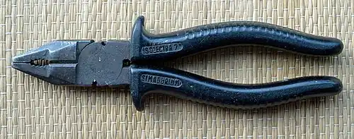 - ↑ Pliers and nippers — Engineer's and Lineman's pliers — Dimensions and test values. [dostęp 2024-09-06].