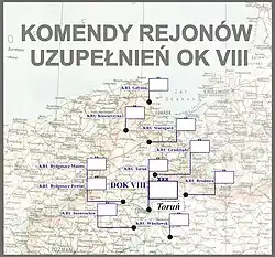 Komendant rejonu uzupełnień w sprawach dotyczących uzupełnień Sił Zbrojnych i administracji rezerw podlegał bezpośrednio dowódcy Okręgu Korpusu Nr VIII, który był okręgowym organem kierowniczym służby uzupełnień. Rejon uzupełnień nie uległ zmianie i nadal obejmował powiaty: włocławski, lipnowski i nieszawski[2].