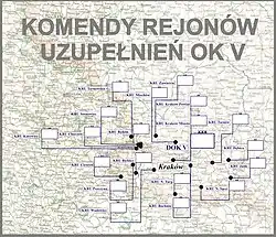 Komendant rejonu uzupełnień w sprawach dotyczących uzupełnień Sił Zbrojnych i administracji rezerw podlegał bezpośrednio dowódcy Okręgu Korpusu Nr V, który był okręgowym organem kierowniczym służby uzupełnień. Rejon uzupełnień nie uległ zmianie i nadal obejmował powiat zawierciański[1].