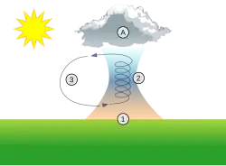 Zjawisko powstawania prądu wznoszącego, wskutek nagrzewania powietrza przez podłoże, którego temperatura wzrasta pod wpływem promieniowania słonecznego nosi nazwę termiki wypracowanej. Częstą oznaką jej występowania są chmury cumulus tworzące się, gdy wznoszące się powietrze ochłodzi się poniżej punktu rosy[1].