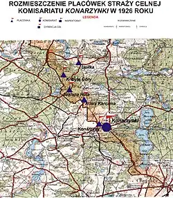 Na wniosek Ministerstwa Skarbu, uchwałą z 10 marca 1920 roku, powołano do życia Straż Celną[1]. Od połowy 1921 roku jednostki Straży Celnej rozpoczęły przejmowanie odcinków granicy od pododdziałów Batalionów Celnych[2]. Proces tworzenia Straży Celnej trwał do końca 1922 roku[3]. Komisariat Straży Celnej „Konarzynki”, wraz ze swoimi placówkami granicznymi, wszedł w podporządkowanie Inspektoratu Straży Celnej „Chojnice”[4].