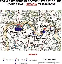 Na wniosek Ministerstwa Skarbu, uchwałą z 10 marca 1920 roku, powołano do życia Straż Celną[1]. Od połowy 1921 roku jednostki Straży Celnej rozpoczęły przejmowanie odcinków granicy od pododdziałów Batalionów Celnych[2]. Przejęcie ochrony granicy od batalionów Celnych na terenie Inspektoratu SC „Zaleszczyki” nastąpiło 14 października 1922 o 12:00[3]. Proces tworzenia Straży Celnej trwał do końca 1922 roku[4]. Komisariat Straży Celnej „Sińków”, wraz ze swoimi placówkami granicznymi, wszedł w podporządkowanie Inspektoratu Straży Celnej „Zaleszczyki”[5].