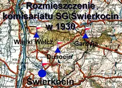 W 1936 komisariat ochraniał granicę państwową na długości 20,937 kilometrów od kamienia granicznego III/224 do IV/089. Placówka „Gardeja” ochraniała odcinek długości 11,152 km, placówka „Dusocin” 4,285 km, placówka „Wielki Wełcz” 5,5 km[7].