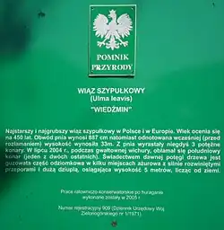 - ↑ Rejestr Polskich Drzew Pomnikowych - Wiąz Wiedźmin