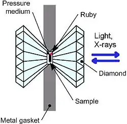 - The Diamond-Anvil Cell. crystal.vt.edu. [zarchiwizowane z tego adresu (2012-08-26)]. – Crystallography Laboratory at Virginia Tech (ang.)