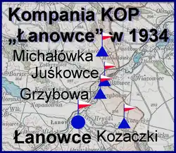 3 kompania graniczna „Łanowce” w 1934 ochraniała odcinek granicy państwowej szerokości 23 kilometrów 540 metrów[14]. Po stronie sowieckiej granicę ochraniały zastawy „Pankowce” i „Wiązowiec” z komendantury „Ilkowce”[15].