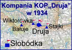 1 kompania graniczna „Druja” w 1934 ochraniała odcinek granicy państwowej szerokości 25 kilometrów 900 metrów[12].