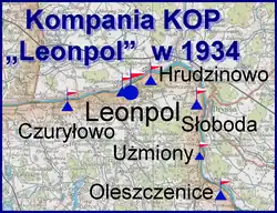 - ↑ Życie i służba żołnierzy K.O.P.: 5 baon 3 komp. Leonpol. „Żołnierz Polski”. 16, s. 315, 1932-04-17. Warszawa.