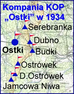 W 1939 1 kompania graniczna KOP „Ostki” podlegała dowódcy batalionu KOP „Rokitno”[2].