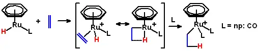 - addycję alkenów do wodorków metali i spontaniczną przemianę σ-π kompleksów alkenowych do alkilowych: