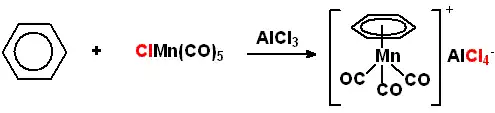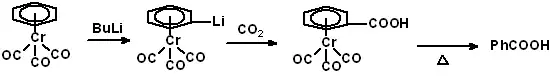 Przyłączanie metali do arenów przez wiązanie π-d przydaje się jednak do ułatwiania wbudowywania grup do samych arenów, gdyż metal "uczula" je na atak nukleofilowy umożliwiając zajście wielu reakcji, które inaczej nie byłyby możliwe. Np: