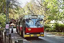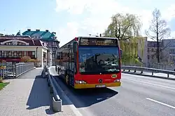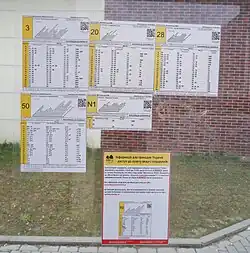 - ↑ Miejscem postoju autobusów w tym czasie był plac wewnętrzny siedziby MPK między ul. Partyzantów a Stefana Batorego.