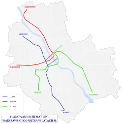 - ↑ Warszawa: Kolejna linia metra z północy na południe, a nie na prawy brzeg? [online], www.transport-publiczny.pl [dostęp 2022-01-09] (pol.).