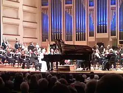 - Koncert fortepianowy Witolda Lutosławskiego, skomponowany w 1988 na zamówienie Festiwalu w Salzburgu. W jego prawykonaniu jako solista brał udział Krystian Zimerman, zwycięzca IX Międzynarodowego Konkursu Pianistycznego im. Fryderyka Chopina w 1975 roku.