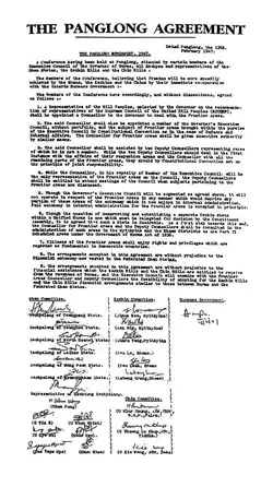 (ang. if Burma receives one kyat, you will also get one kyat). Rozumiane są one jako deklaracja równości narodów przyszłej Birmy i odejście od praktyki ekonomicznego zaniedbywania terenów górskich[8]. Ostateczny tekst porozumienia podpisany został 12 lutego 1947 roku przez Aung Sana ze strony birmańskiej oraz przez 13 przedstawicieli Szanów, 6 delegatów Kaczinów i 3 Czinów. 4 obserwatorów kareńskich nie podpisało Porozumienia.