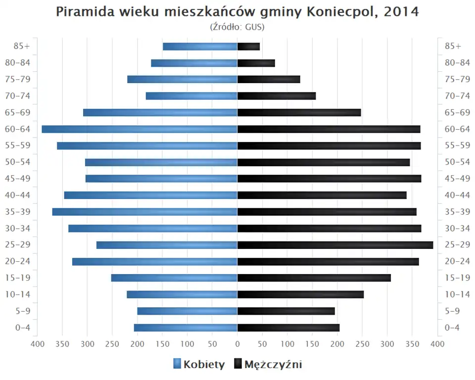 - Piramida wieku mieszkańców gminy Koniecpol w 2014 roku[1].