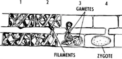- Koniugacja sprzężnic – fuzja haploidalnych komórek sprzężnic prowadząca do powstania zygospory.