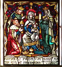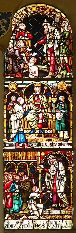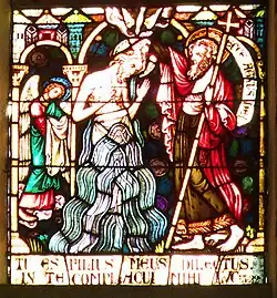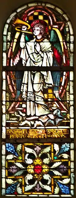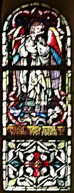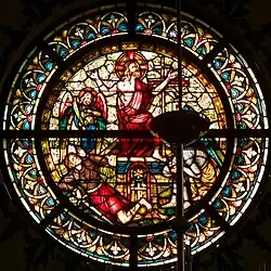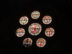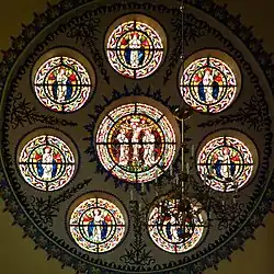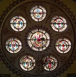 - w rozetach ściany południowej transeptu przedstawiono Wniebowstąpienie i adorujące anioły,