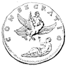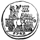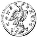 Bardziej jeszcze zróżnicowane były wyobrażenia rewersowe, zwykle opatrzone napisem Consecratio: w przypadku cesarza – czteropoziomowy stos pogrzebowy z umieszczoną na szczycie postacią zmarłego lub wzlatującym orłem (w późniejszych czasach zastąpiony płonącym ołtarzem ofiarnym) albo sam orzeł (stojący bądź ulatujący jako symbol duszy wznoszącej się ku bogom), niekiedy unoszący zmarłego. Nawiązywały one do ceremonii konsekracyjnej, jaka odbywała się na Polu Marsowym. W przypadku małżonek panującego cesarza (niekoniecznie cesarzowych z tytułem augusty) oraz męskich potomków jego rodu umieszczano zazwyczaj wyobrażenie pawia (stojącego wprost lub ulatującego, niekiedy z unoszoną postacią zmarłego).