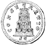 Na rewersie spotykane są też inne przedstawienia łączone z apoteozą danej postaci: świątynia, wóz pogrzebowy – carpentum (w przypadku kobiet), kwadryga lub platforma z posągiem ubóstwionego ciągnięta przez lwy lub słonie. Do konsekracyjnych zaliczane są również niektóre monety z legendą Aeternitas, przedstawiające uosobienie Wieczności z towarzyszącą postacią zmarłego.